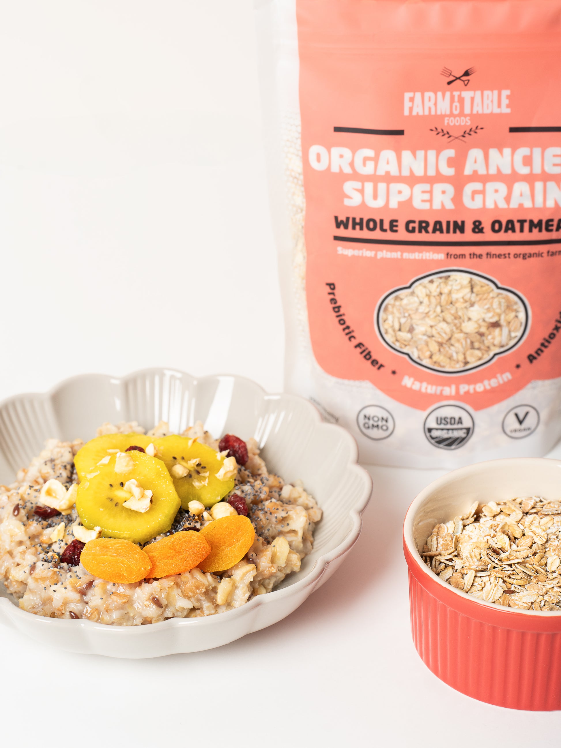 Our blends use organic ancient grain and super seeds, which are more complex carbohydrates. They digest slower and can help avoid the "crash" common after traditional oatmeal.